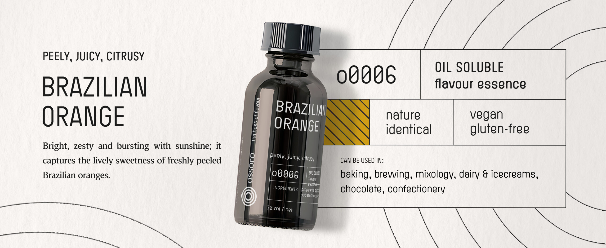 Meet Brazilian Orange, an oil-soluble flavour essence that knows exactly where it shines: cakes, ganache, buttercream, chocolate, ice cream. Picture juicy citrusy sweetness, balanced with refreshing acidity and a hint of floral undertones, bursting in the mouth like sunshine on a vibrant tropical paradise. There's nothing more refreshing than this tangy punch from lands where earth meets the sun. Smells like citrus. Bakes like a boss. Not just for cakes or cookies. And the best part? No zesting, no bitterness, no mess.